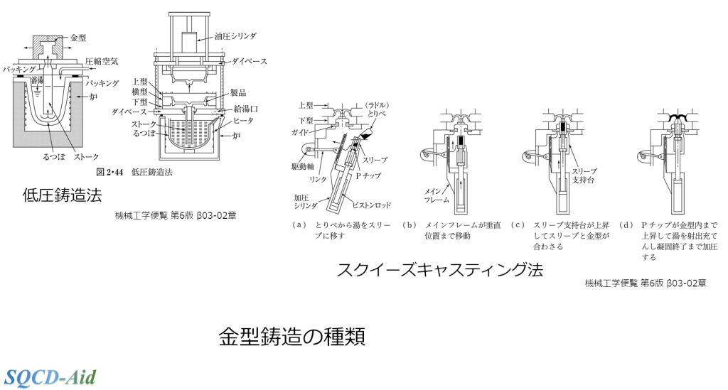 図4金型鋳造の種類 出典:機械工学便覧 第6版 β03-02章 他