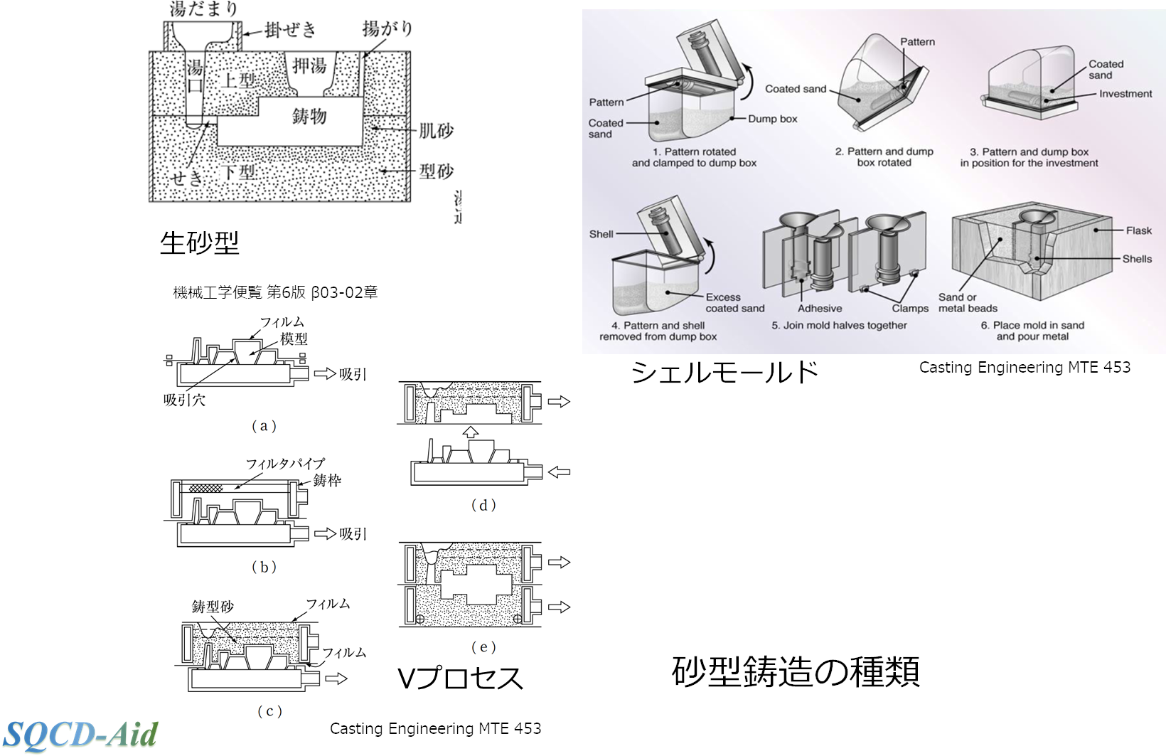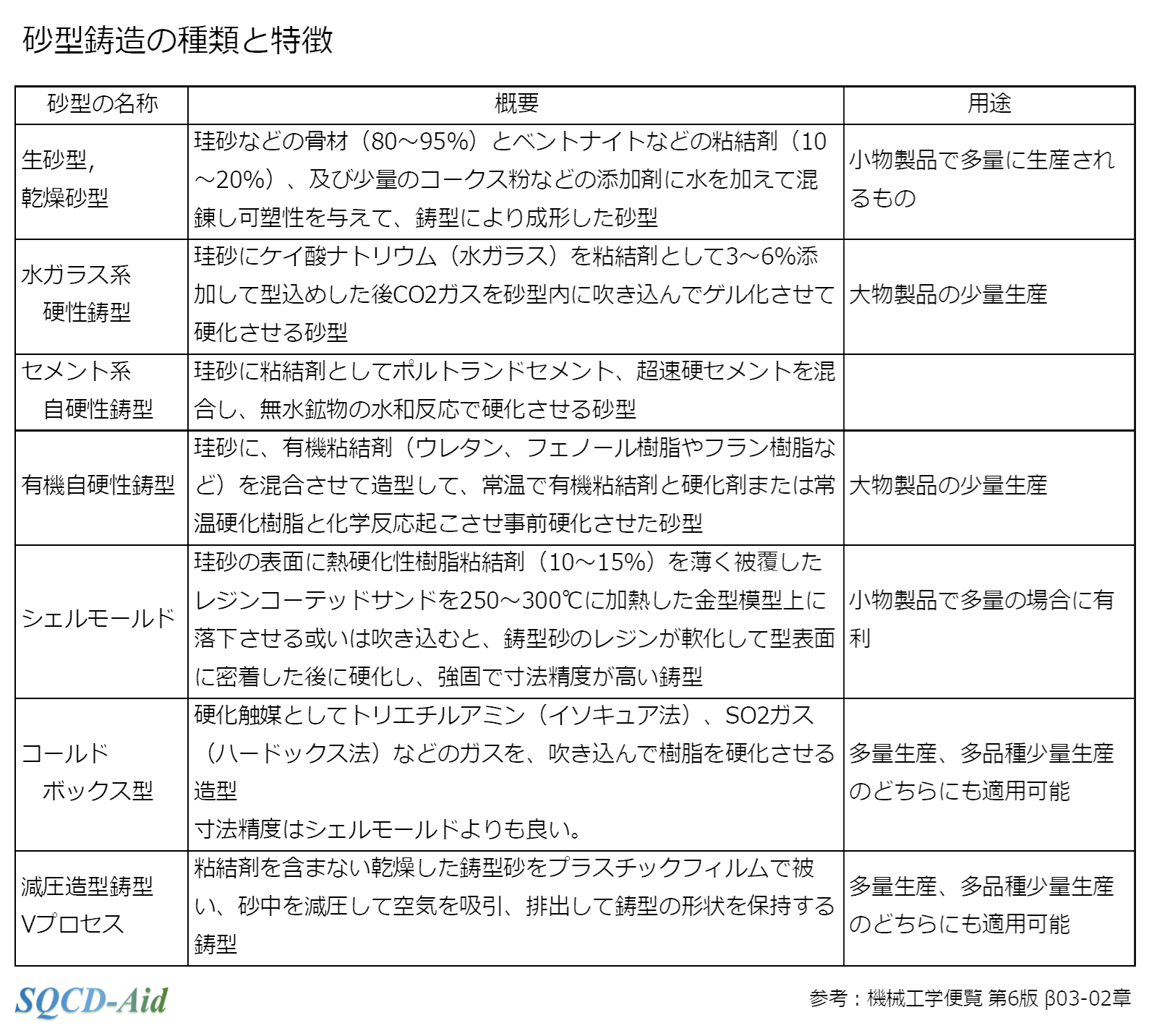 表1砂型鋳造の種類と特徴 出典_参考:機械工学便覧 第6版 β03-02章