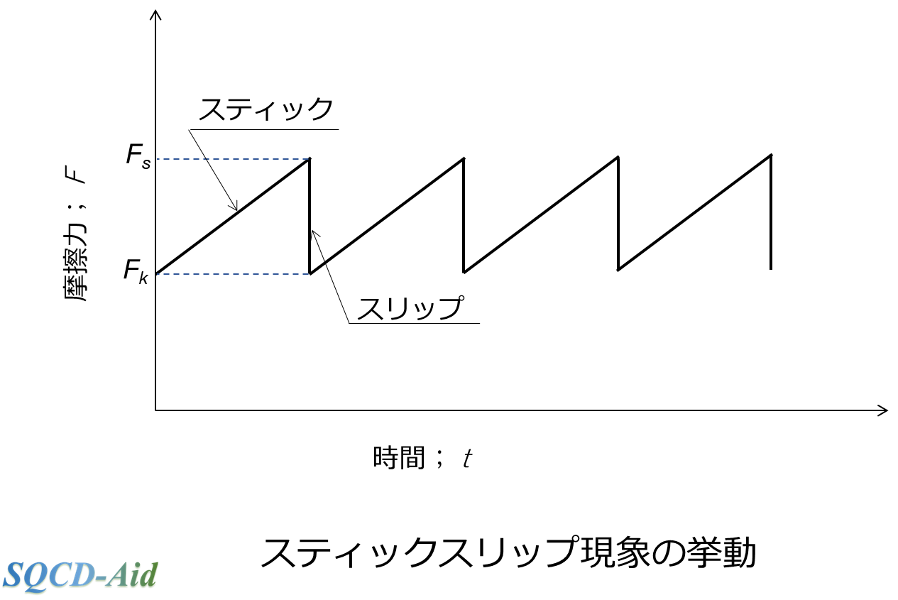 図1 スティックスリップ現象による摩擦力の時間変化 出典:ORIGINAL