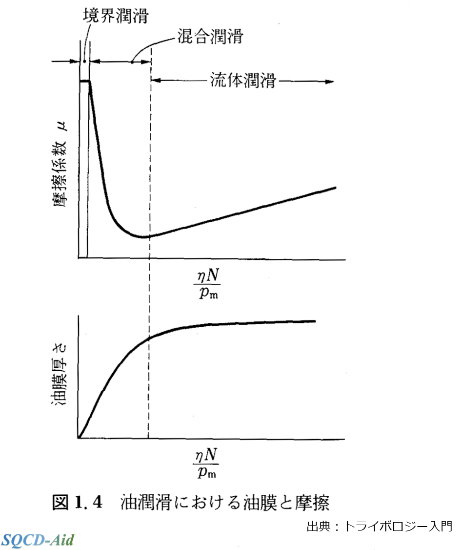 図2 油潤滑における油膜と摩擦 出典:トライボロジー入門