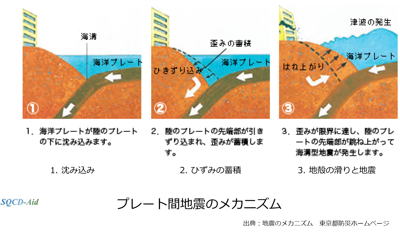 図3 プレート間地震のメカニズム 出典:地震のメカニズム 東京都防災ホームページ