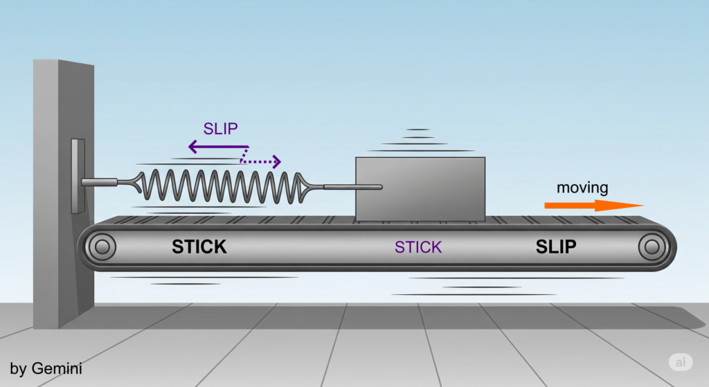 スティックスリップ現象は、主に以下の要因が複雑に絡み合って発生します。