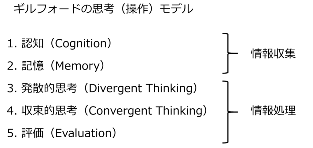 (1)アメリカの思考心理学者ギルフォードの頭脳モデル