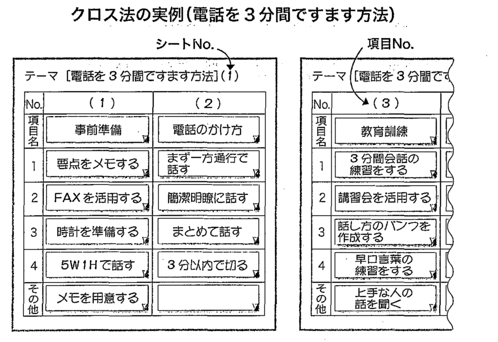 「クロス法j は、アメリカの経営コンサルタントのカール・グレゴリーの「セブン・クロス・セブン法(7 × 7法)」 を元に、高橋先生がより簡便化したものとして提案されました。