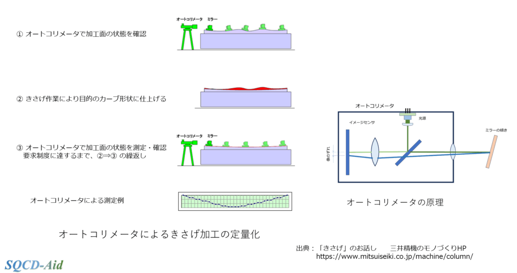 図 オートコリメータによるきさげ加工の定量化 出典:「きさげ」のお話し三井精機のモノづくりHP