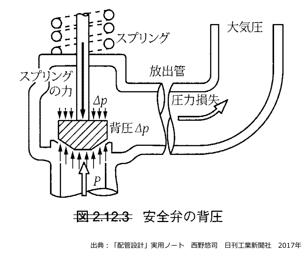 図 安全弁の背圧 出典:「配管設計」実用ノート 西野悠司 日刊工業新聞社 2017年