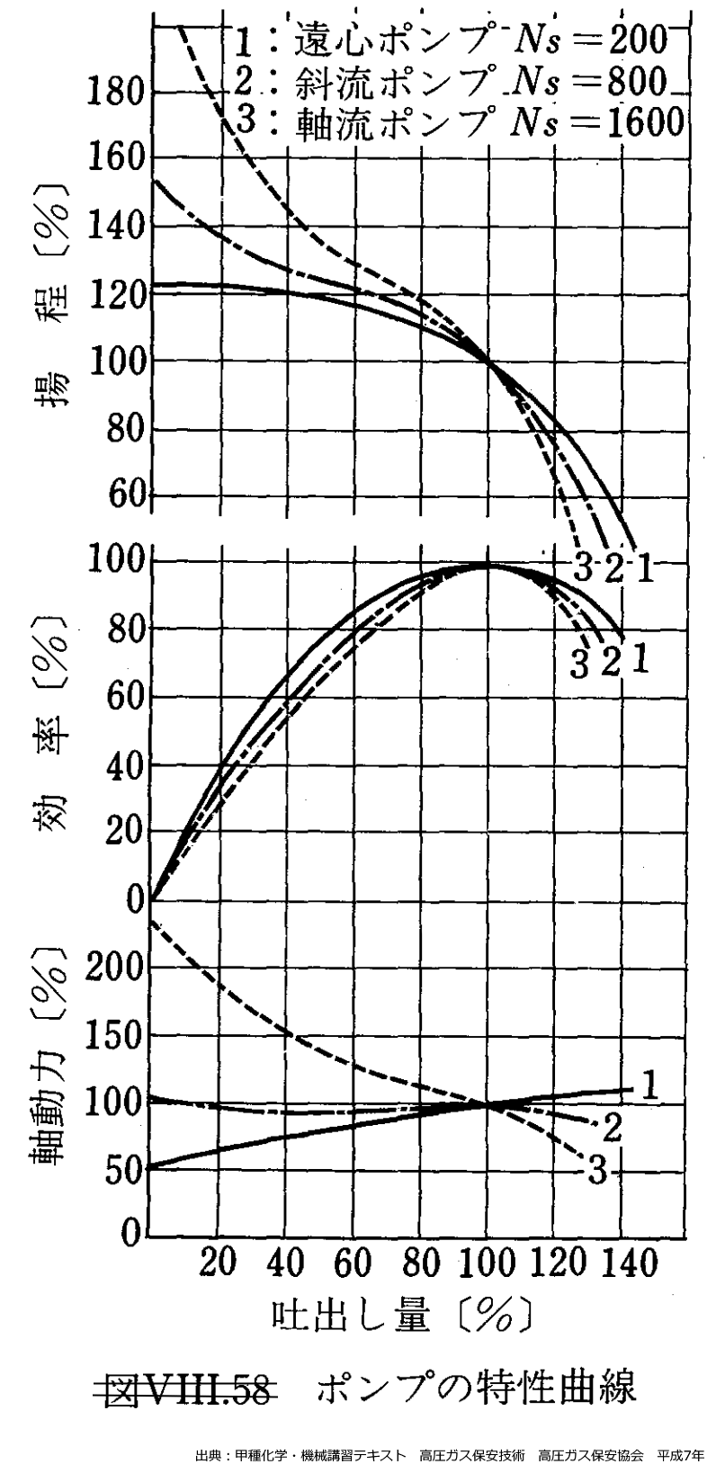図 比速度による特性の相違 出典:甲種化学・機械講習テキスト 高圧ガス保安技術 高圧ガス保安協会 平成7年