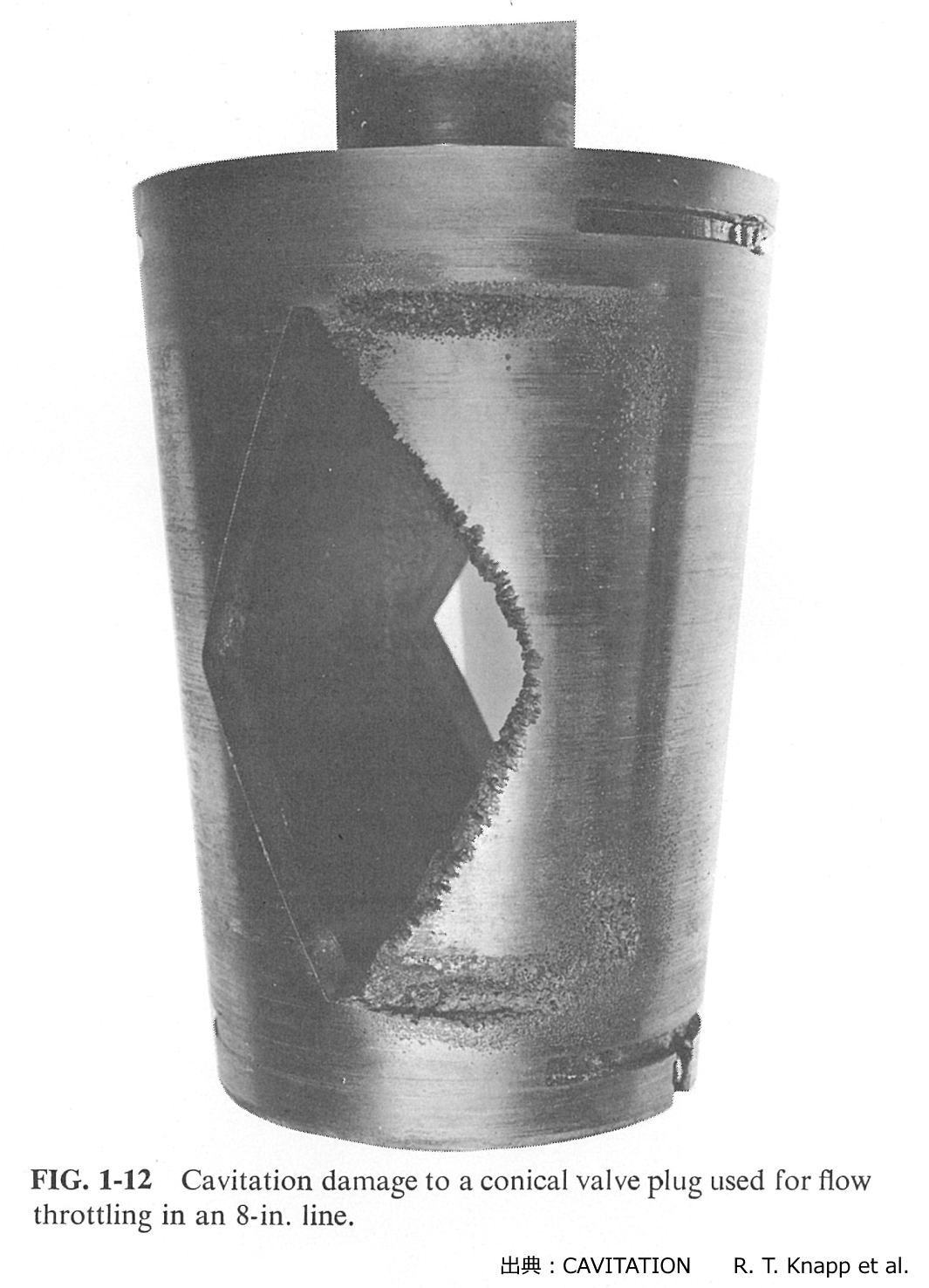 図 バルブに発生するキャビテーション 出典:CAVITATION R. T. Knapp et al.