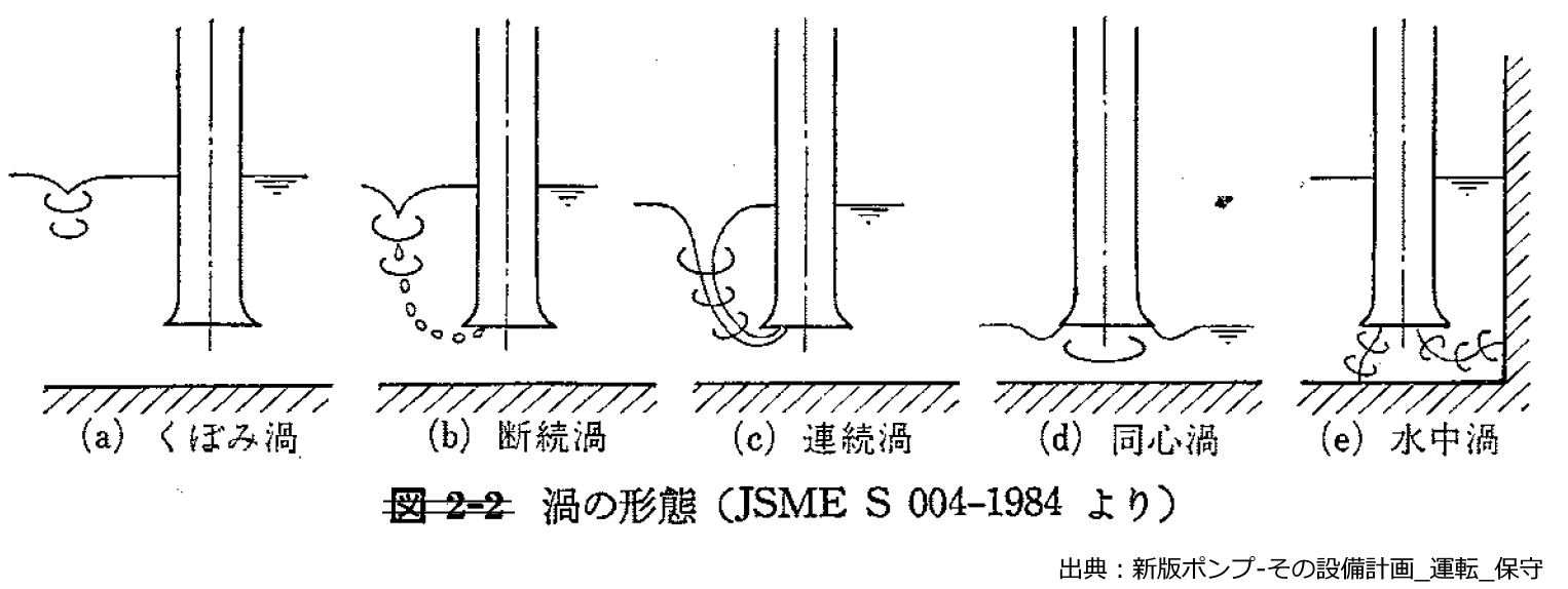図 吸込槽に発生する渦 出典:新版ポンプ-その設備計画_運転_保守