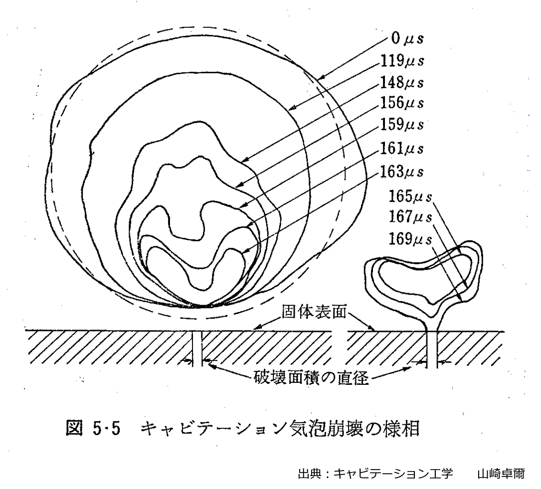 図 キャビテーション気泡崩壊の様相 出典:キャビテーション工学 山崎卓爾
