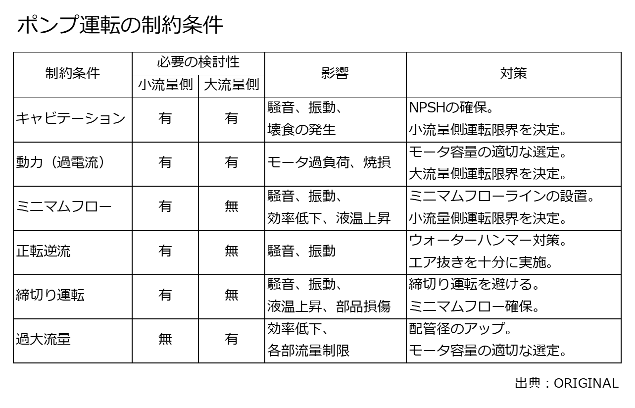 表 ポンプの制約条件 出典:ORIGINAL