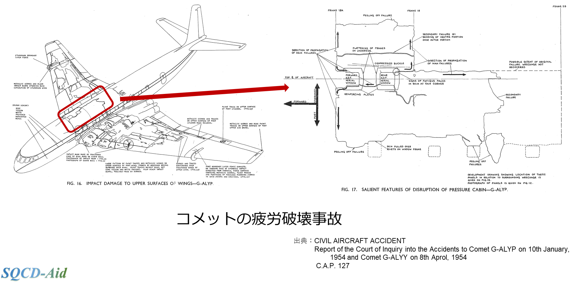 図 コメットの疲労破壊事故 出典:CIVIL AIRCRAFT ACCIDENT Report of the Court of Inquiry into the Accidents to Comet